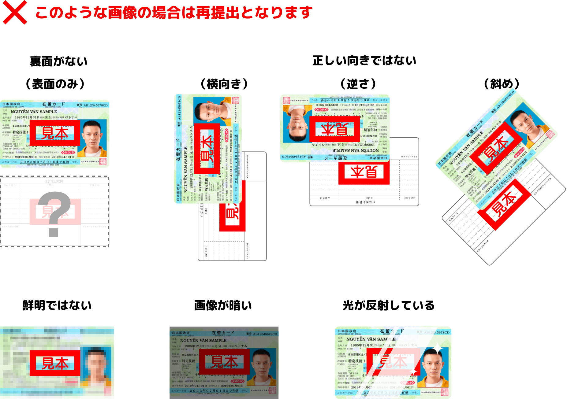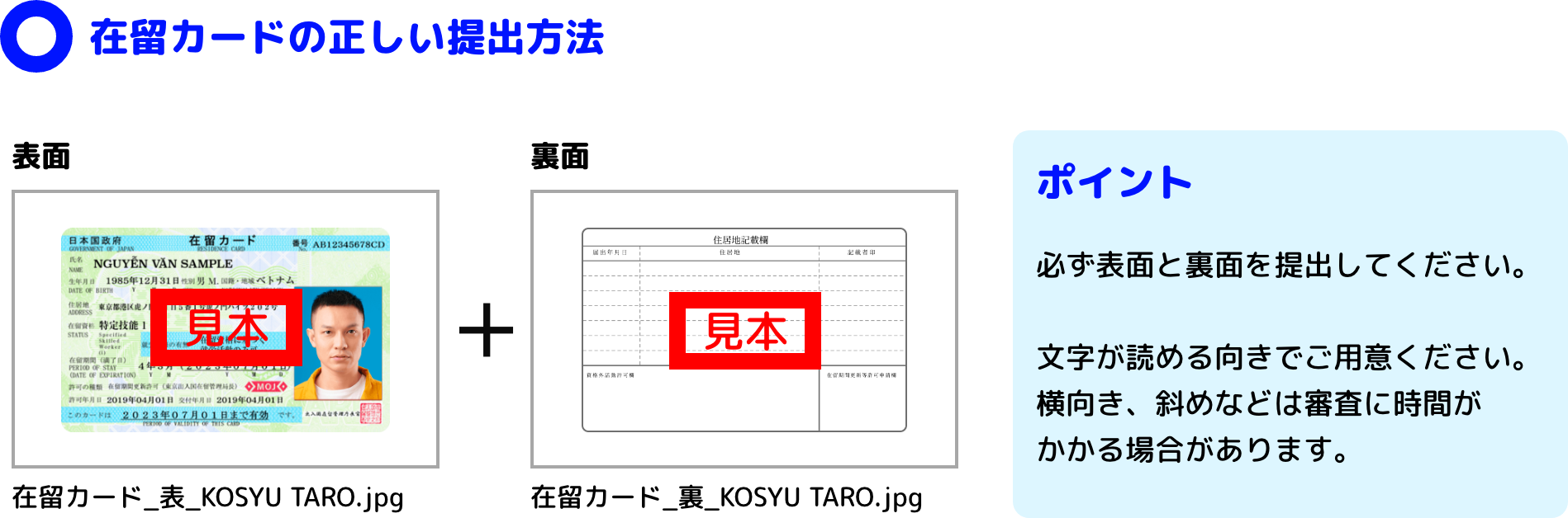 在留カード(表面および裏面の写し)データは、本人確認に使用されます。